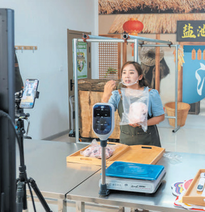 盐池县一家电商企业主播推介销售滩羊肉。盐池县委宣传部提供