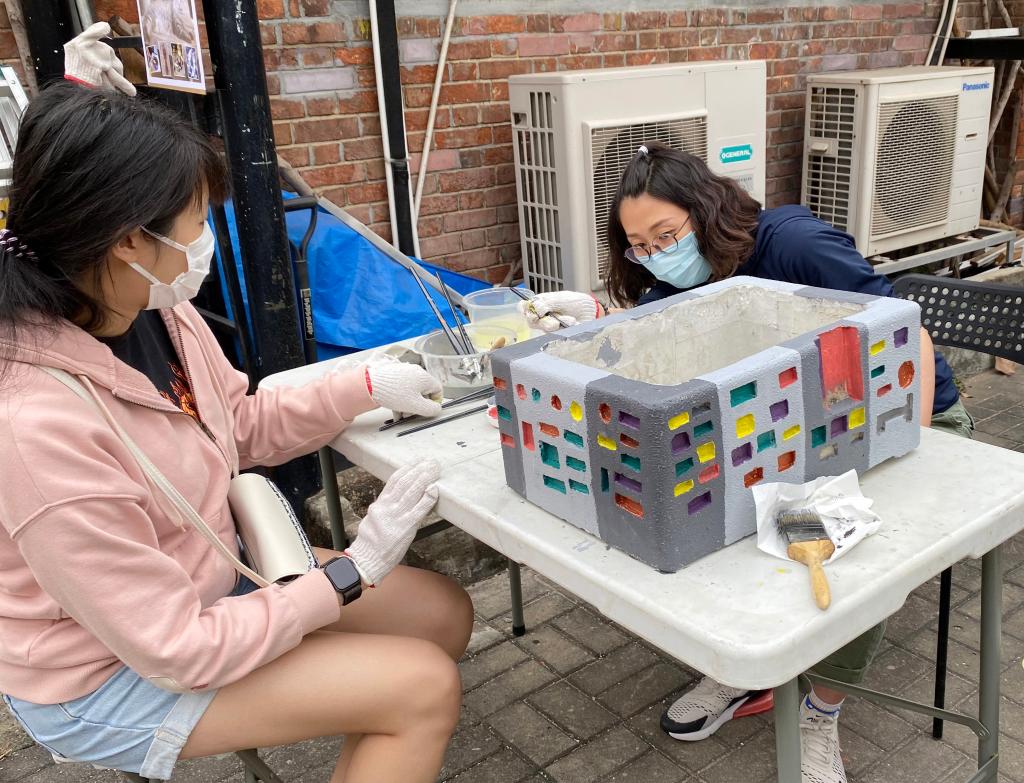 九龙城区的社区街坊和游客积极参加制作水泥花盆等活动(2020年11月摄)。新华社发