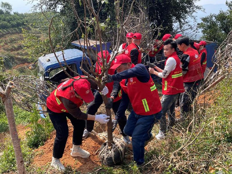 2023年3月12日,厦门市同安区教育局组织鸿源技术学校志愿服务队到平和县进行义务植树志愿活动。(地方媒体供图)