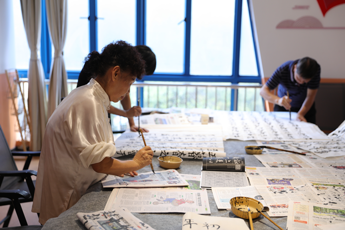 7月24日,邹世恒与老人们一起写书法。(地方媒体供图)
