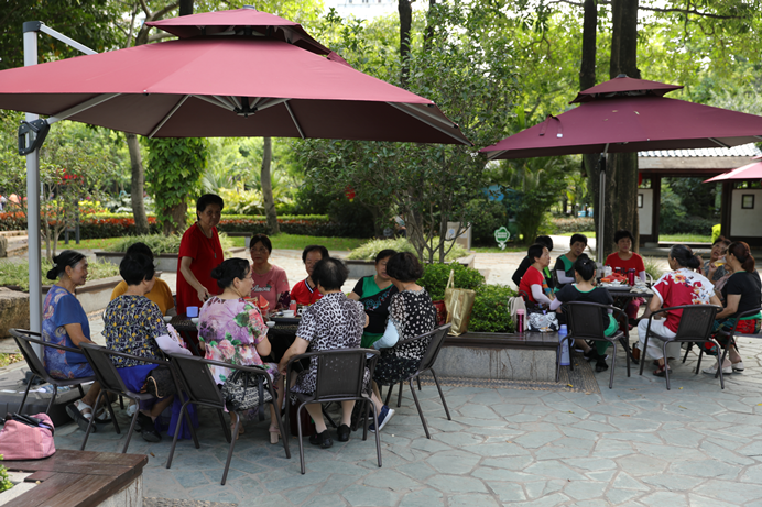 7月25日,市民在南湖公园喝茶聊天。(地方媒体供图)