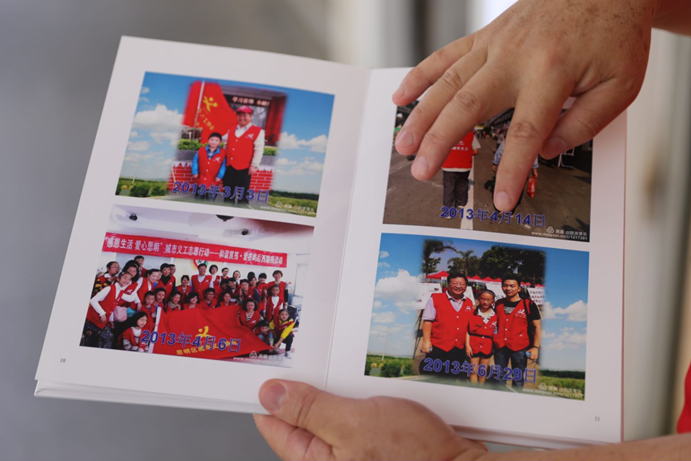 7月25日,陈建南向记者介绍曾经组织过的志愿服务活动。(地方媒体供图)