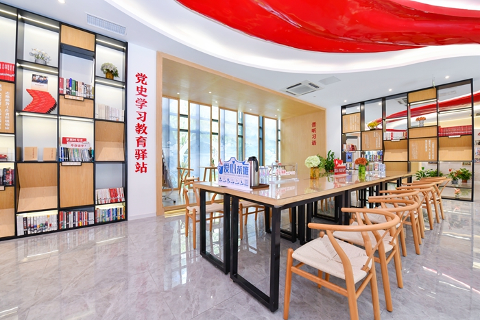 晋安区新时代文明实践中心场所内,宽敞明亮,设置了“爱心茶摊”供居民休息饮用(7月21日摄)。新华网 于珊 摄