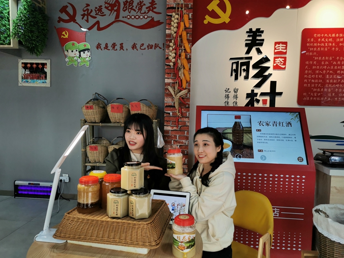 福州市晋安区创新助农模式,线下线上同向发力,协调解决农产品流通环节等难点问题。开拓“线上助农”模式,巧用“直播带货”新手段,发动社区党员志愿者成立“助农直播团”,拓宽农产品销售渠道。图为3月3日,福建省福州市晋安区“精准助农”志愿服务项目正在直播推介农产品。福州市文明办供图