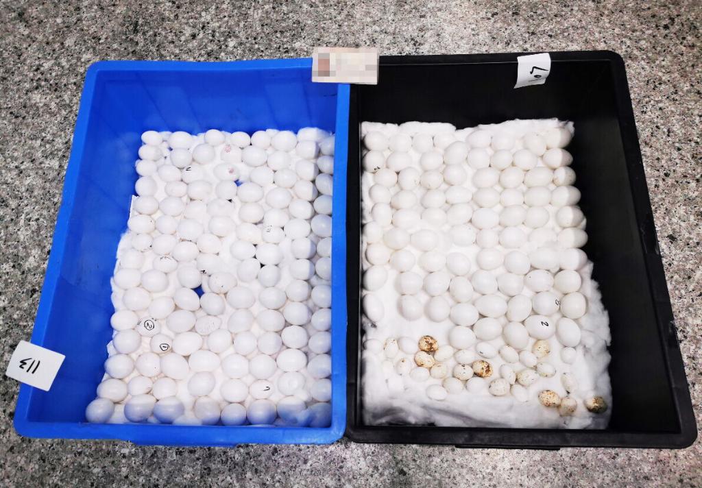 图为截获的220枚鹦鹉蛋。(刘文 摄)