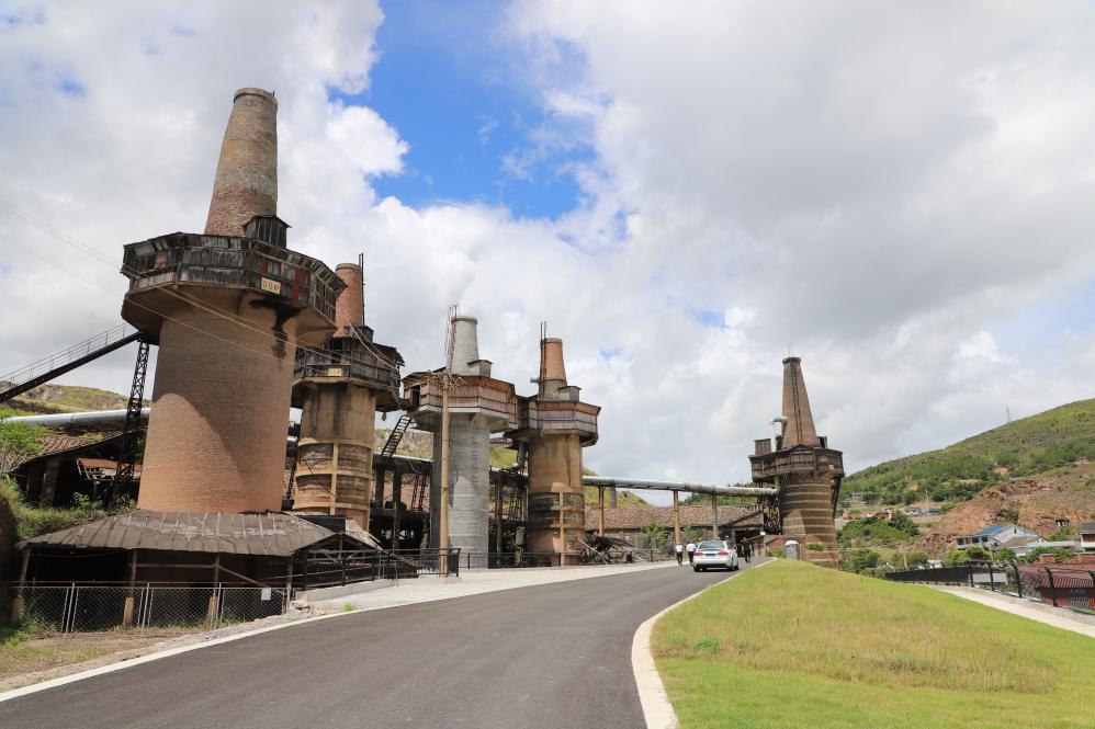 开车驶入浙江省温州市苍南县矾山镇境内,道路一转,几座煅烧炉跃入眼帘。管道和爬梯错落其间,斑驳的锈迹与褪色的红砖诉说着岁月沧桑。没有了昔日浓烟,矾山溪水中的倒影愈发澄澈,绿水青山与这些坚实的庞然大物相映成趣。