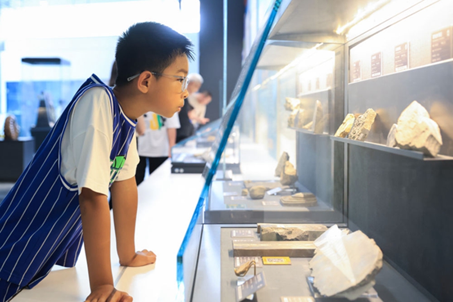 8月13日,小朋友在南京古生物博物馆参观。 新华社发(苏阳摄)