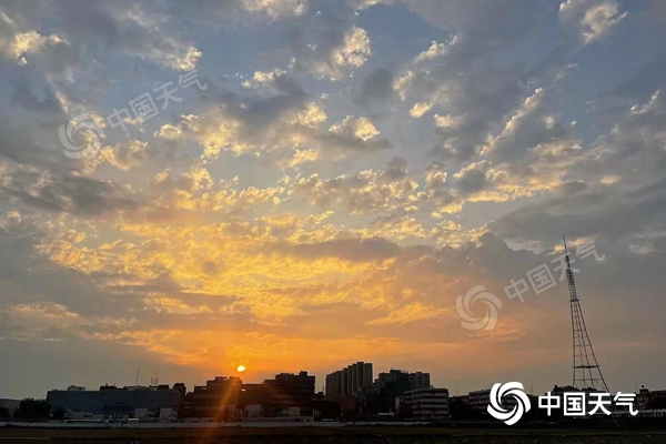 北京今晨朝霞伴日出。(图/中国天气网 王晓)