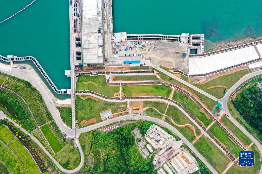 9月2日拍摄的广西大藤峡水利枢纽船闸(无人机照片)。新华社记者 曹祎铭 摄