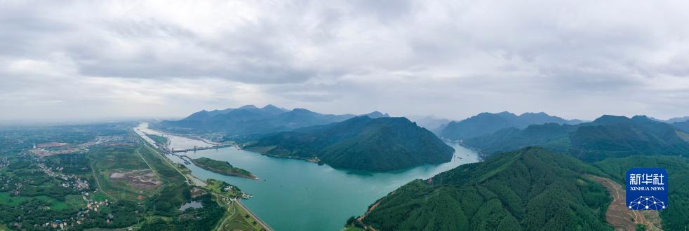 9月2日拍摄的广西大藤峡水利枢纽和周边峡谷(无人机全景照片)。新华社记者 曹祎铭 摄