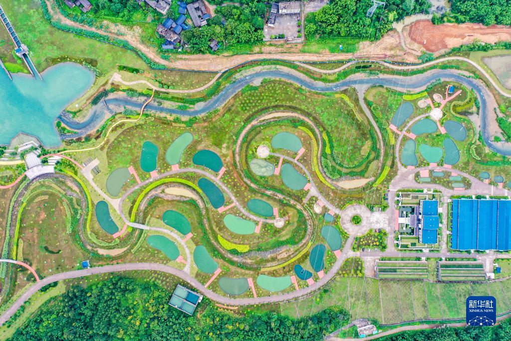 9月2日拍摄的广西大藤峡水利枢纽南木江副坝仿自然生态鱼道和周边配套设施(无人机照片)。新华社记者 曹祎铭 摄