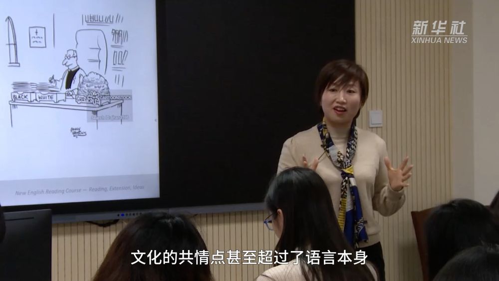 青年教师张虹倩按学术辈分是潘文国的徒孙,她介绍说,如今虚拟现实课堂让世界各地的学习者可以身临其境般地来到课堂,甚至“走遍”中国的各个角落,中国的名胜古迹、文博场馆甚至大街小巷都成了学习汉语和了解中国文化的课堂。