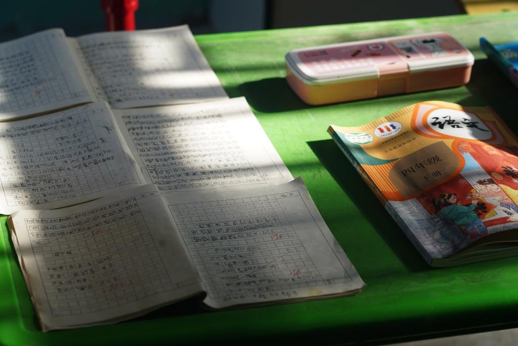 图为小泽的课本和作业本(9月4日摄)。新华社记者 万象 摄