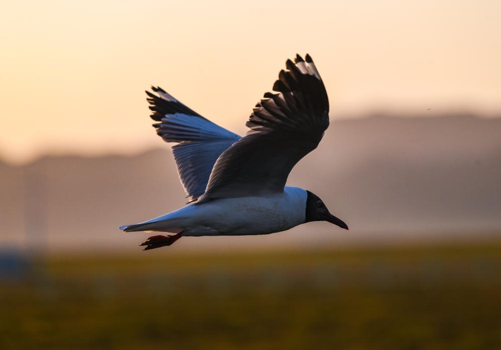 这是在四川省阿坝藏族羌族自治州若尔盖县花湖湿地拍摄的棕头鸥。新华社记者 王曦 摄