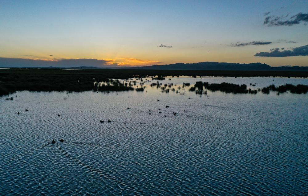这是在四川省阿坝藏族羌族自治州若尔盖县花湖湿地拍摄的水鸟。新华社记者 王曦 摄