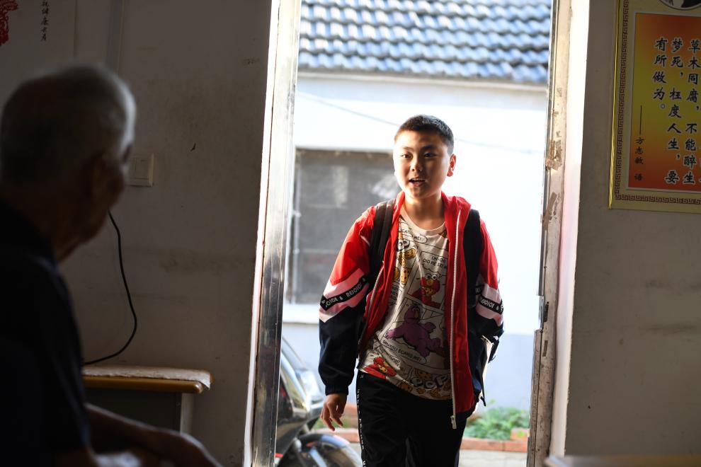 9月9日,一名学生走进“留守未成年人之家”教室,向叶连平打招呼。新华社记者 张端 摄