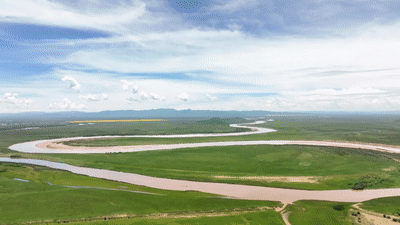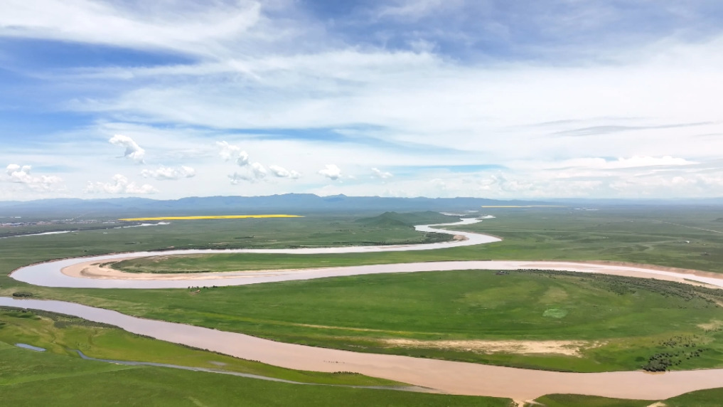 在四川阿坝藏族羌族自治州若尔盖县唐克镇,黄河在若尔盖大草原“美丽回眸”,勾勒出黄河九曲第一湾。