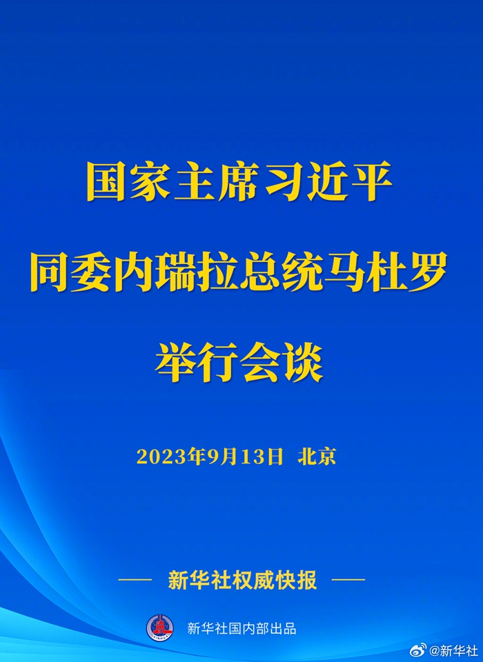 9月13日下午,国家主席习近平在人民大会堂同来华进行国事访问的委内瑞拉总统马杜罗举行会谈。两国元首宣布,将中委关系提升为全天候战略伙伴关系。