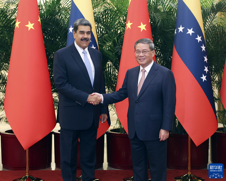 9月14日上午,国务院总理李强在北京人民大会堂会见来华进行国事访问的委内瑞拉总统马杜罗。新华社记者 刘卫兵 摄