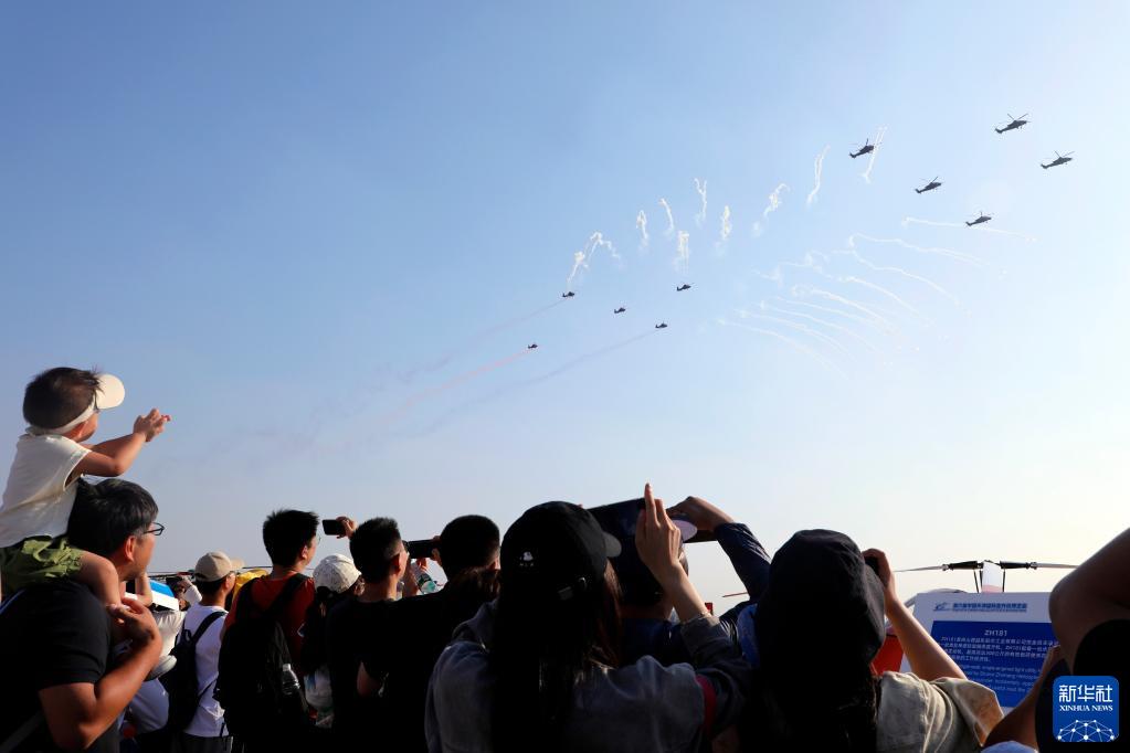从“筑梦追心”到“尾追螺旋”再到“四机开花”,直-10和直-19武装直升机宛若空中舞者,拉出的“心”形彩烟让小学生谢奕霖激动地跳了起来,“这是我最喜欢的表演,太美太炫酷了!”