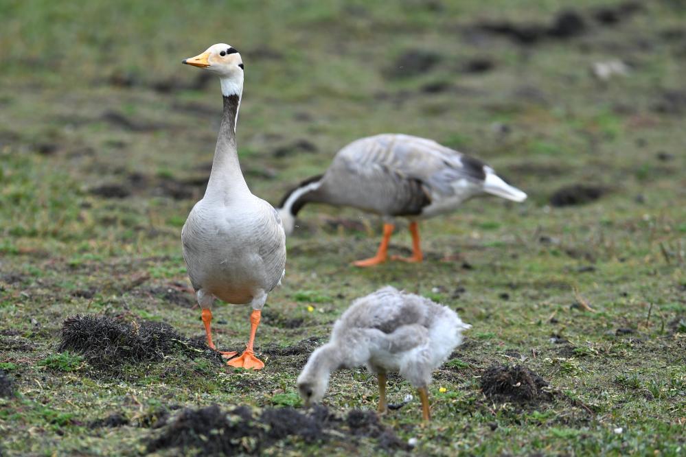 这是在甘肃尕海则岔国家级自然保护区的尕海湿地上拍摄的斑头雁。 新华社记者 张可任 摄