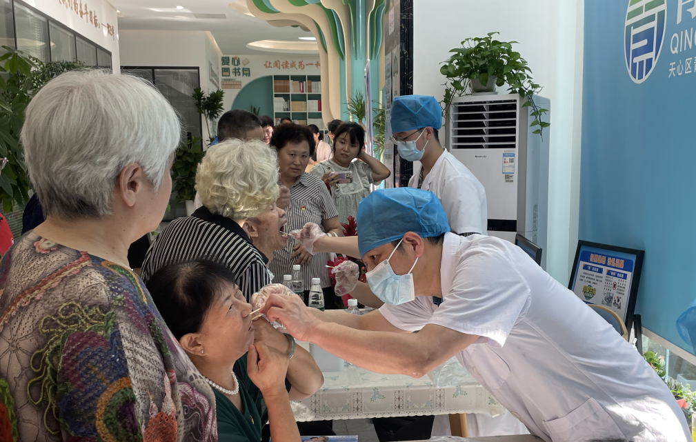 2023年9月中旬,长沙市口腔医院医生为老年患者义诊。长沙市口腔医院供图