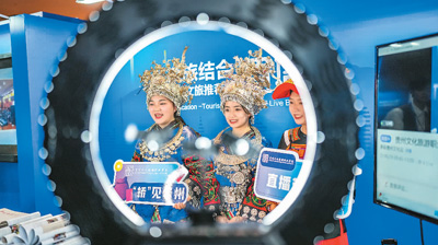 贵州文化旅游职业学院学生在交流周活动上直播。新华社记者 陶 亮摄
