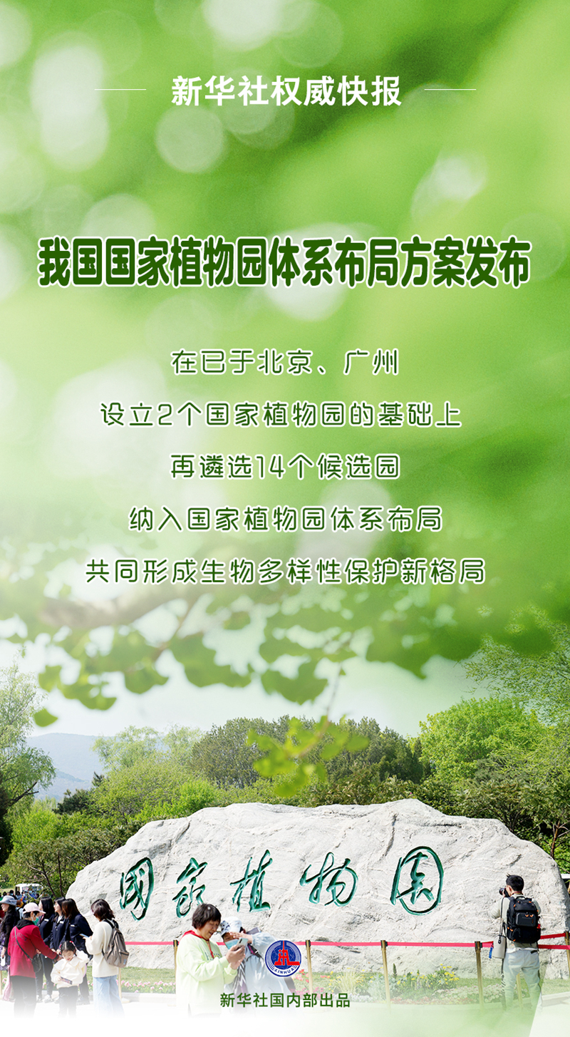 记者21日从国家林草局了解到,由国家林草局等联合印发的国家植物园体系布局方案正式发布,确定在已于北京、广州设立2个国家植物园的基础上,再遴选14个候选园纳入国家植物园体系布局,逐步构建中国特色、世界一流、万物和谐的国家植物园体系。未来将加强与国家公园体系的统筹协同,共同形成生物多样性保护新格局。