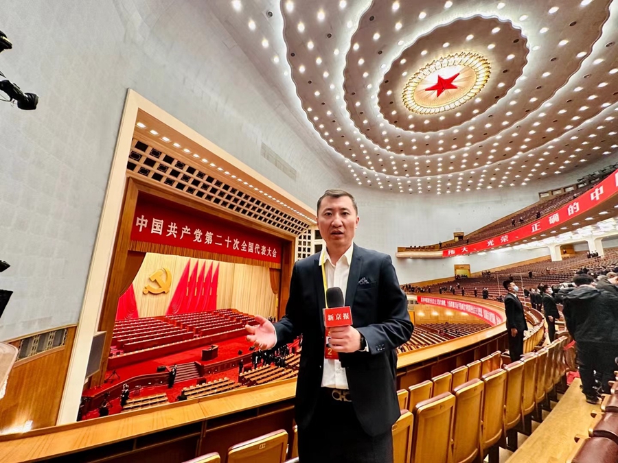 2022年10月16日,北京人民大会堂,参与报道中国共产党第二十次全国代表大会。
