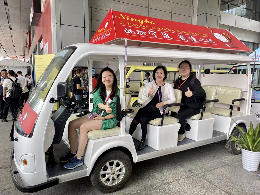 单玉紫枫(左一)采访广交会,携手宁波最大外贸公司副总裁应秀珍直击外贸最前线