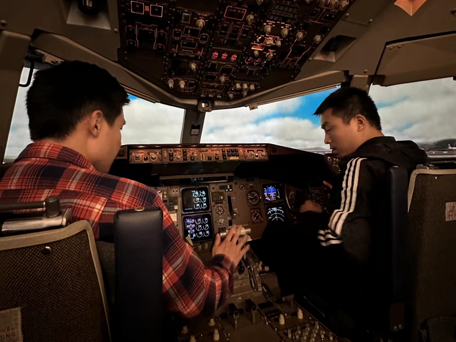 2023年6月4日,记者在位于郑州航空港区的BAA(中国)航空培训中心,实地感受模拟飞行训练。