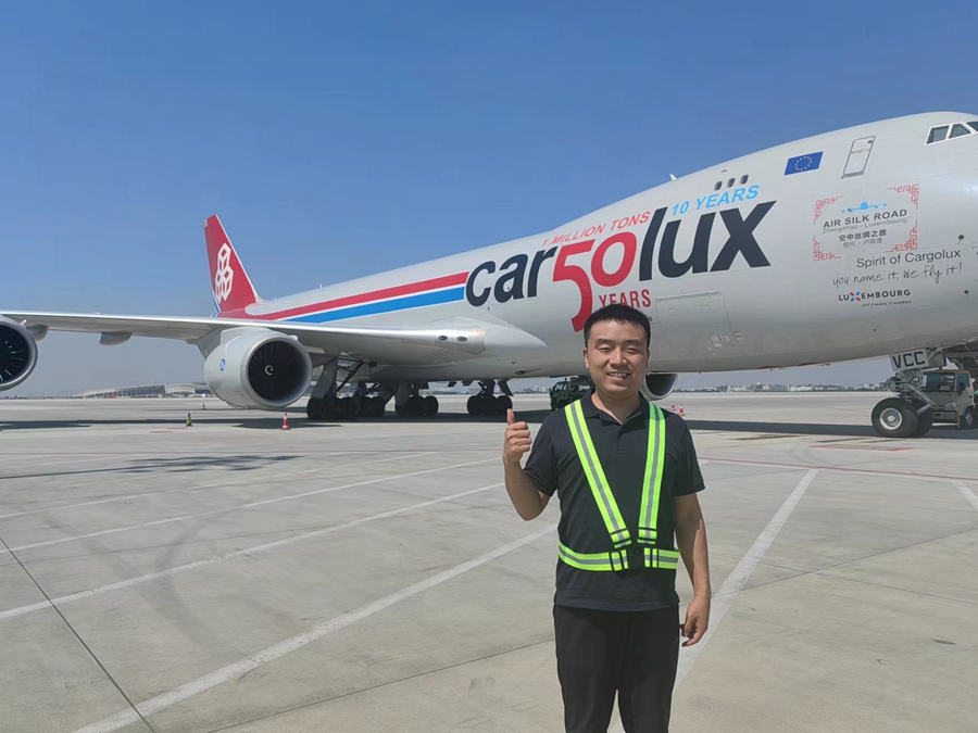 2023年6月14日,郑州-卢森堡“空中丝绸之路”建设十周年暨郑卢绿色丝绸之路首航仪式举行,记者现场见证“丝路号”首航。