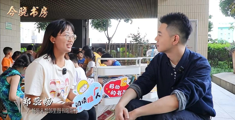 党的二十大报告中提出要深化全民阅读活动,提高全社会文明程度。在去年的致首届全民阅读大会的贺信中,习近平总书记深情寄语:“希望全社会都参与到阅读中来,形成爱读书、读好书、善读书的浓厚氛围。”于是我就在想,作为一名全媒体记者,我能为这项工作做些什么?全民阅读重在“全民”——全民参与、全民共享、全民受益。我走出演播室,走进街头巷尾,去探寻大家在阅读方面的实际需求。帮助大家去挖掘、去发现,哪里能够读书,哪里适合读书。在广州,寸土寸金的珠江新城,我看到行人不仅可以在服务站休息喝水,还可以在这里读书看报;在乡村发展的一线,我看到当地发展已经把建好图书馆作为第一个考虑指标;在佛山,有1472户家庭自愿加入“邻里图书馆”项目,以书为媒共建阅读社区,培育良好家风。在医院、在乡村,在轮船上、在工地上,许许多多曾被我们忽略的地方,都在努力探寻将图书馆延伸至日常生活的创新做法。“图书馆共建”、“图书馆+”,我们之所以在图书馆上下功夫,不仅仅是因为这些阅读场所给我们带来的便利,更重要的在于——我们笃信,通过阅读,让知识的力量、书籍的智慧,培育和增强我们的文化自信。