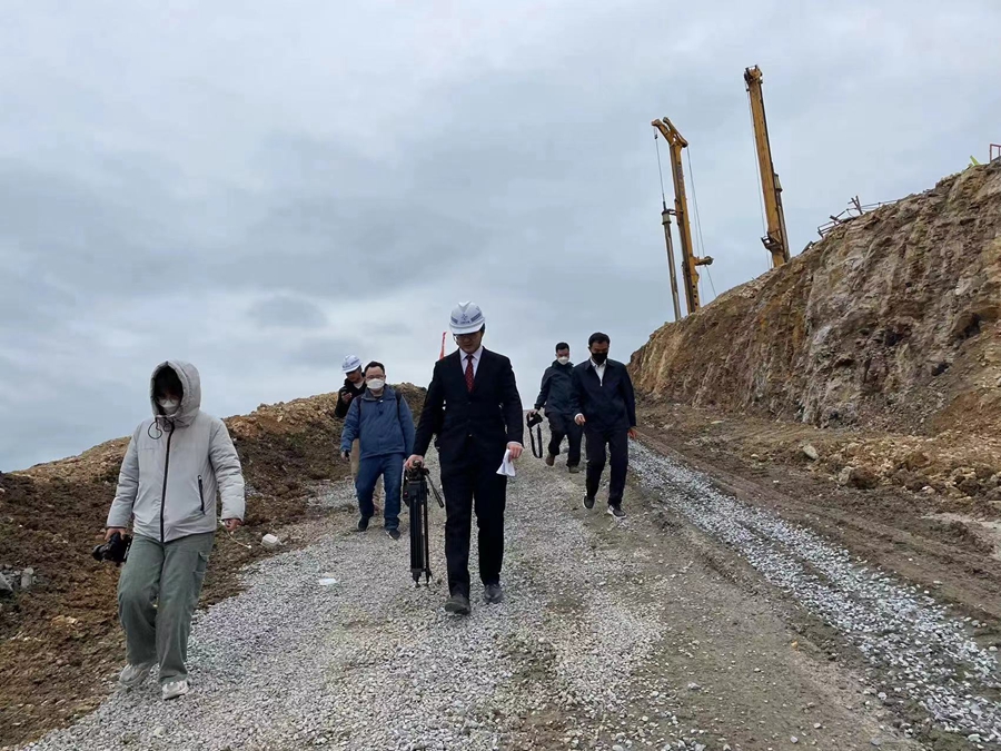 2023年1月15日,“平陆运河”马道枢纽最高点完成采访和拍摄下山的路上。