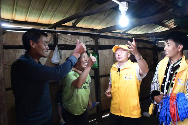 “时代楷模”、国网宁波慈溪市供电公司电力工人钱海军(右二)守护万家灯火。 姚科斌 摄