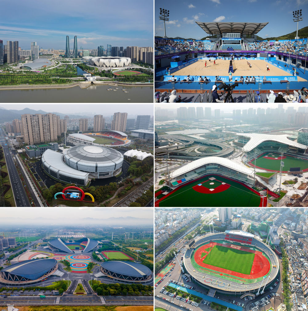 杭州亚运会以杭州为主办城市,宁波、温州、湖州、绍兴、金华为协办城市。中国践行“绿色、智能、文明、节俭”理念,努力向世界奉献一届“中国特色、亚洲风采、精彩纷呈”的体育盛会。