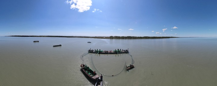 查干湖渔民正在捕捞(9月12日摄)。毕重明摄