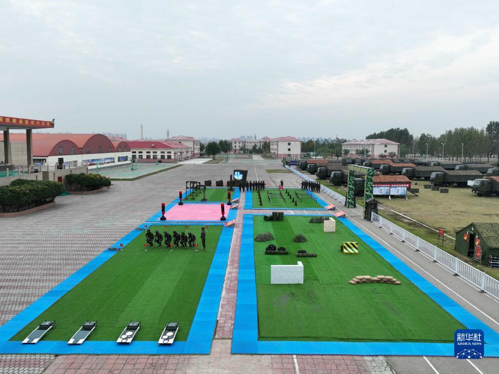 9月25日,武警部队在天津组织新时代按纲抓建基层试行示范,武警第一机动总队某支队官兵进行群众性练兵比武“五小”活动演示。新华社发(顾伟伟 摄)