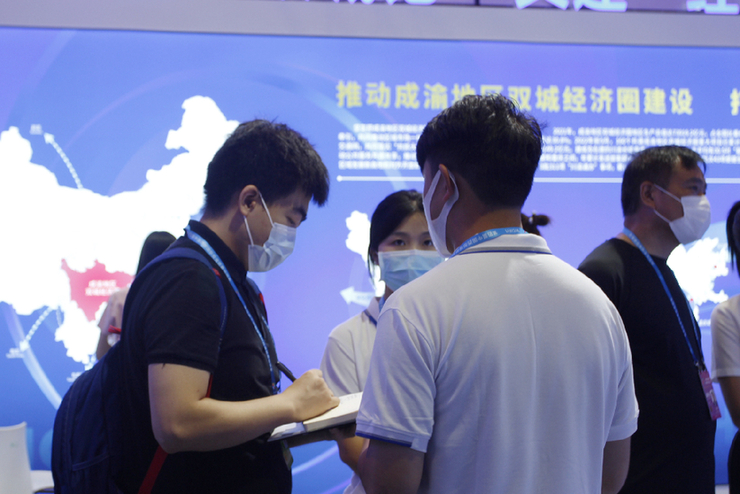 2022年8月,贺子桓正在2022年智博会现场采访。