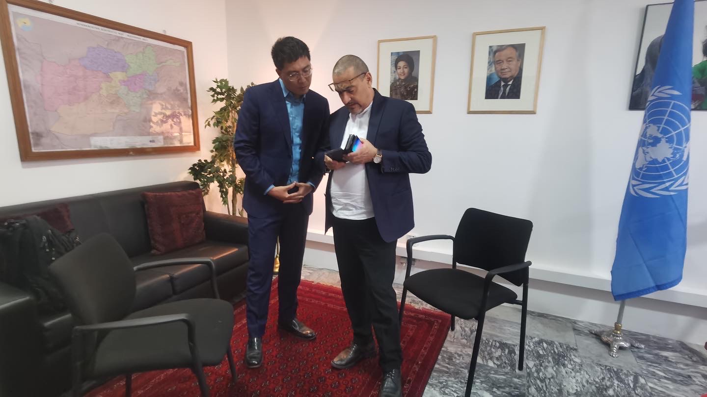 中央广播电视总台-周迦昕-周迦昕在联合国协调处位于喀布尔的驻地采访负责人阿莱巴罗夫博士