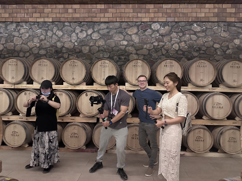 闫东洁6月和外籍同事一起在宁夏贺兰山东麓的红酒庄采访拍摄