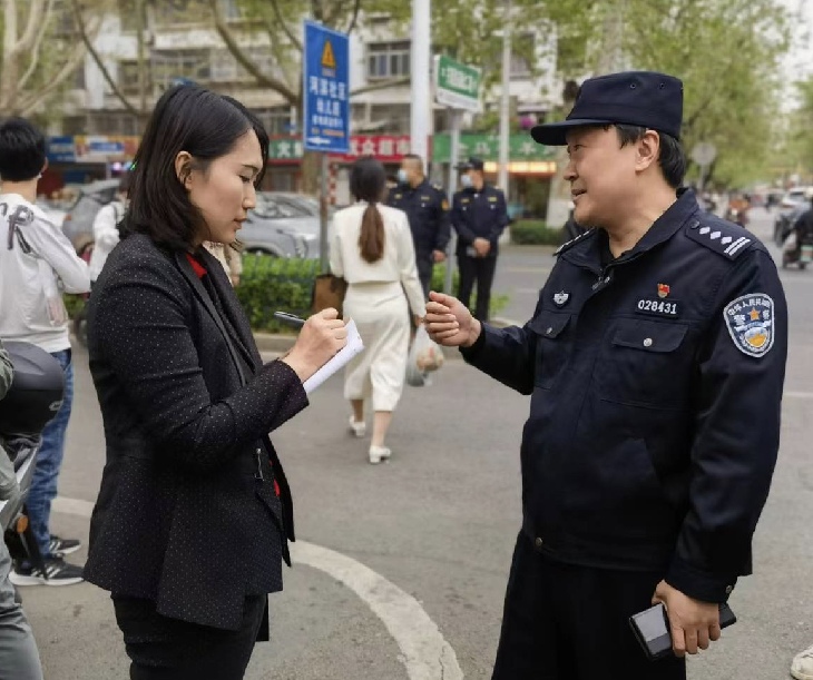 法治日报李娜在淄博烧烤网红打卡地”八大局“门前了解交通秩序维持情况。