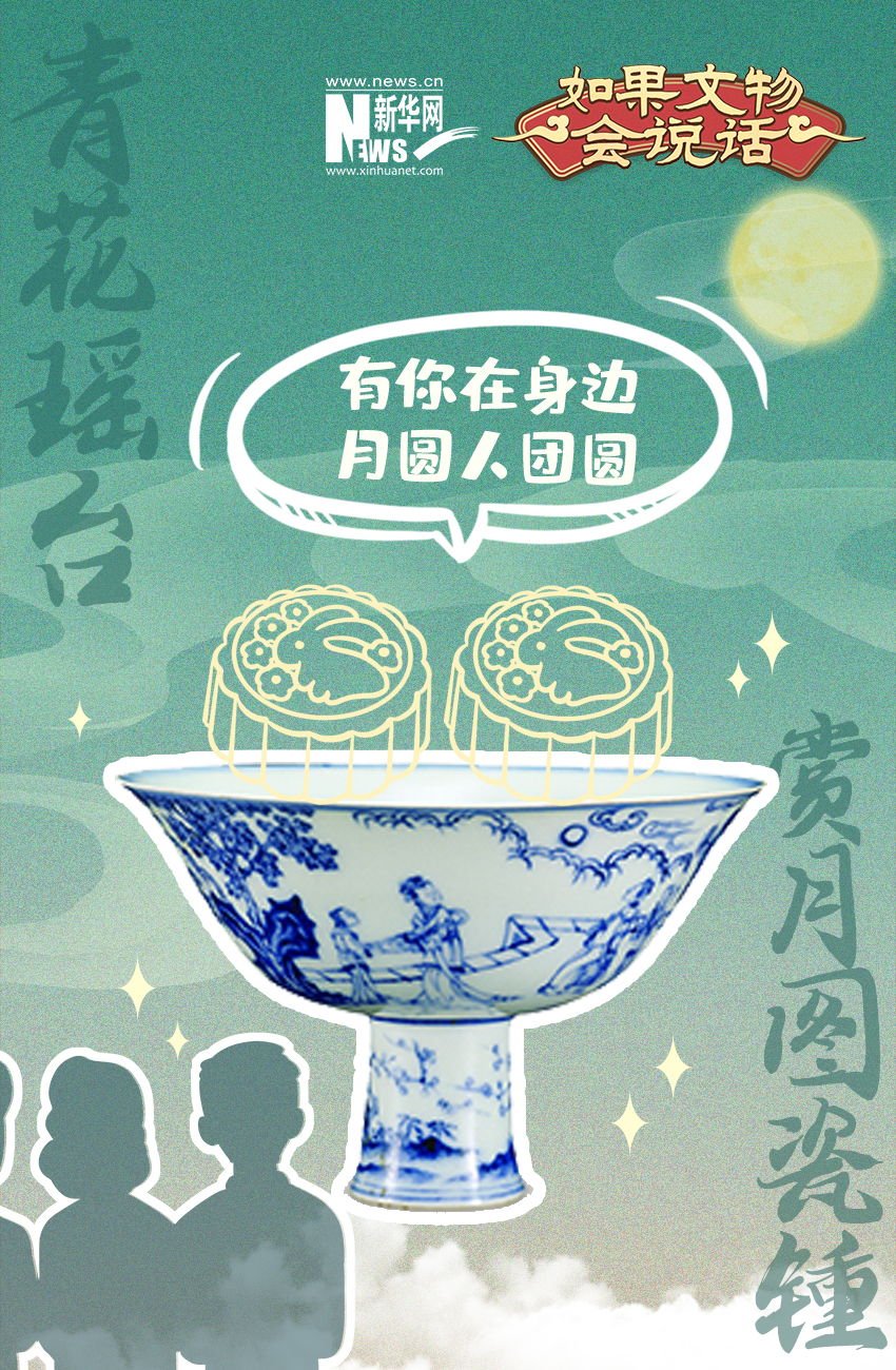 (明)青花瑶台赏月图瓷锺 藏于湖北省博物馆