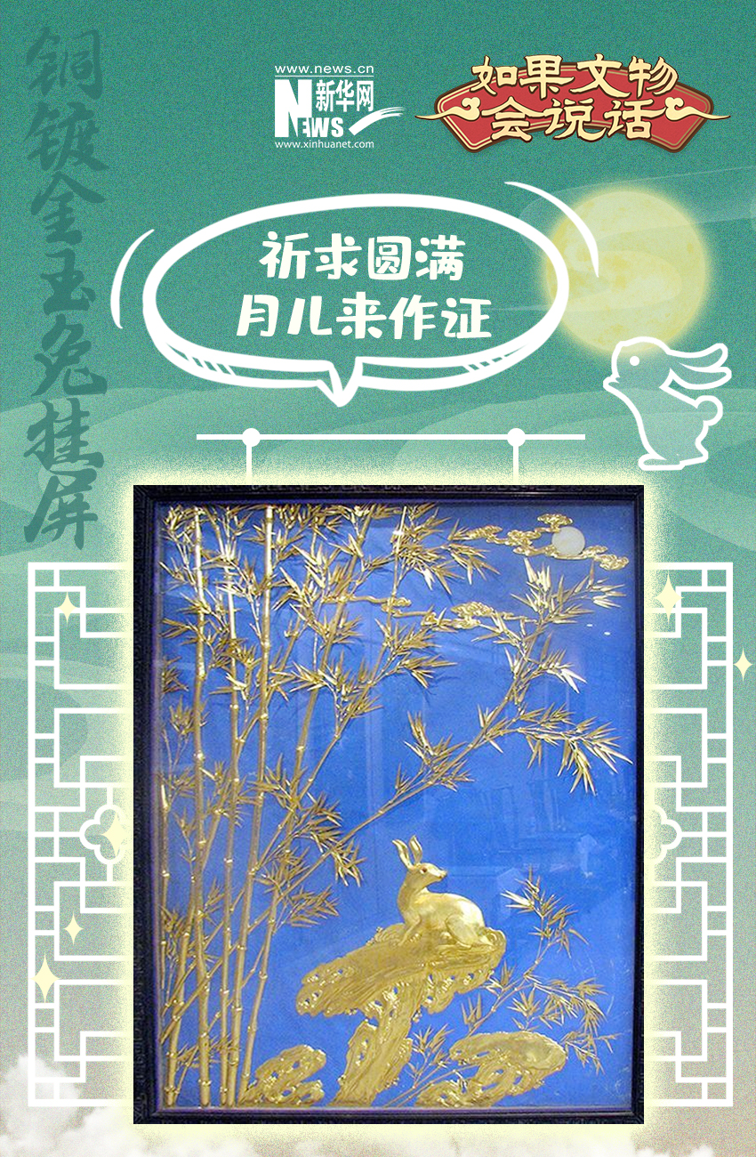 (清)铜镀金玉兔挂屏 藏于南京博物院