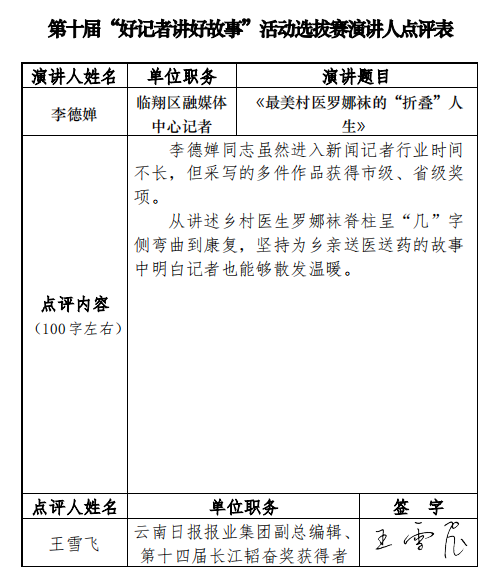 王雪飞点评李德婵《最美村医罗娜袜的“折叠”人生》