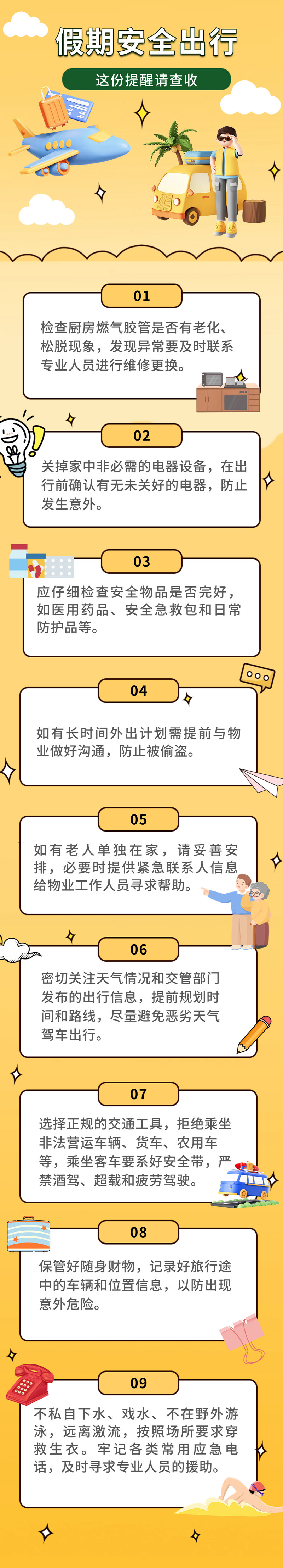 新华社银川9月29日电(记者吕泽)中秋国庆长假,外出游玩是很多人的选择。出门在外,一些“小疏忽”往往会导致假期里的“大问题”。因此,了解安全出行知识尤为重要,这份假期安全出行提醒请查收!