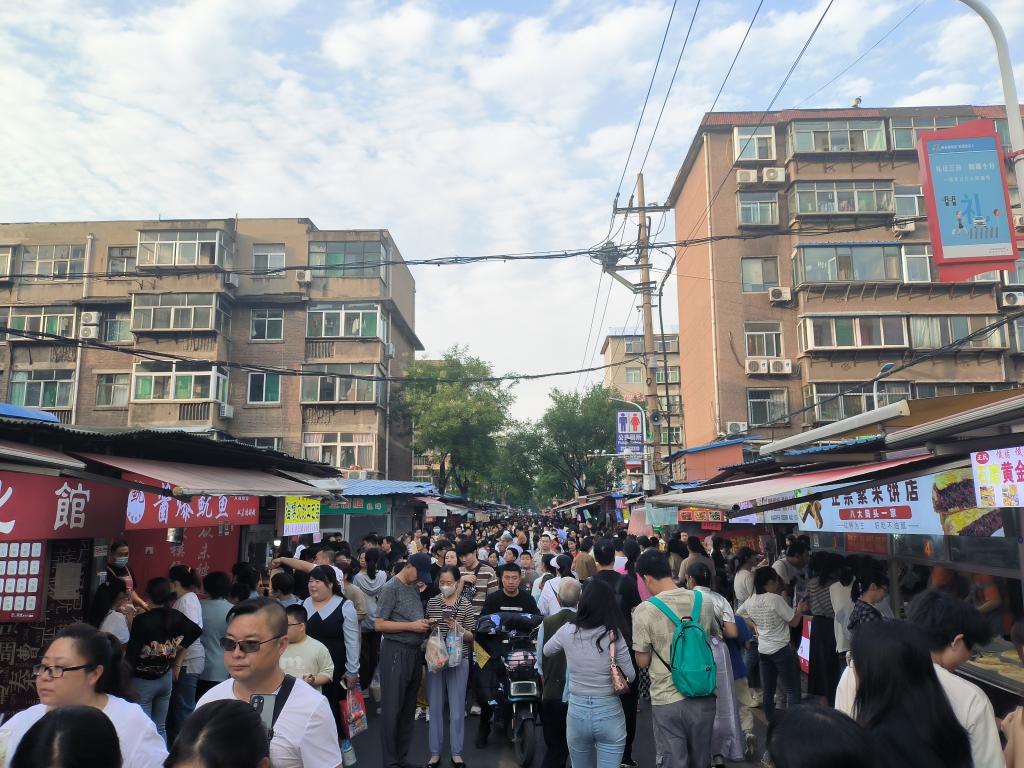 中秋国庆假期期间,淄博八大局便民市场再现“人从众”模式。除了街头巷尾的各类美食,放心购物和热情好客也是很多游客不远千里前来打卡的原因。