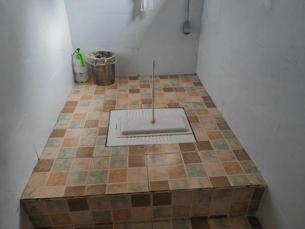 她家厕所是在原有旱厕结构基础上改造的,由红砖砌成,里面贴了防滑瓷砖,外面连着一根超过屋檐的排气管。