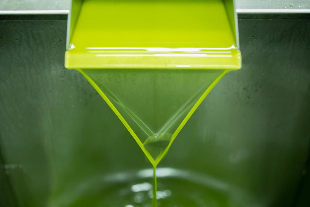 在祥宇油橄榄公司生产线上,初榨橄榄油正在流出(10月11日摄)。新华社记者 郎兵兵 摄
