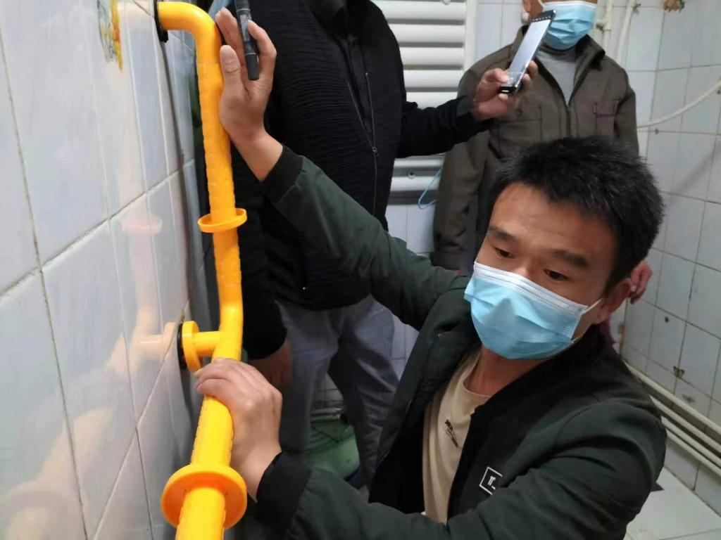 在天津市河西区,工作人员为老人家里安装适老化设施。(受访者供图)